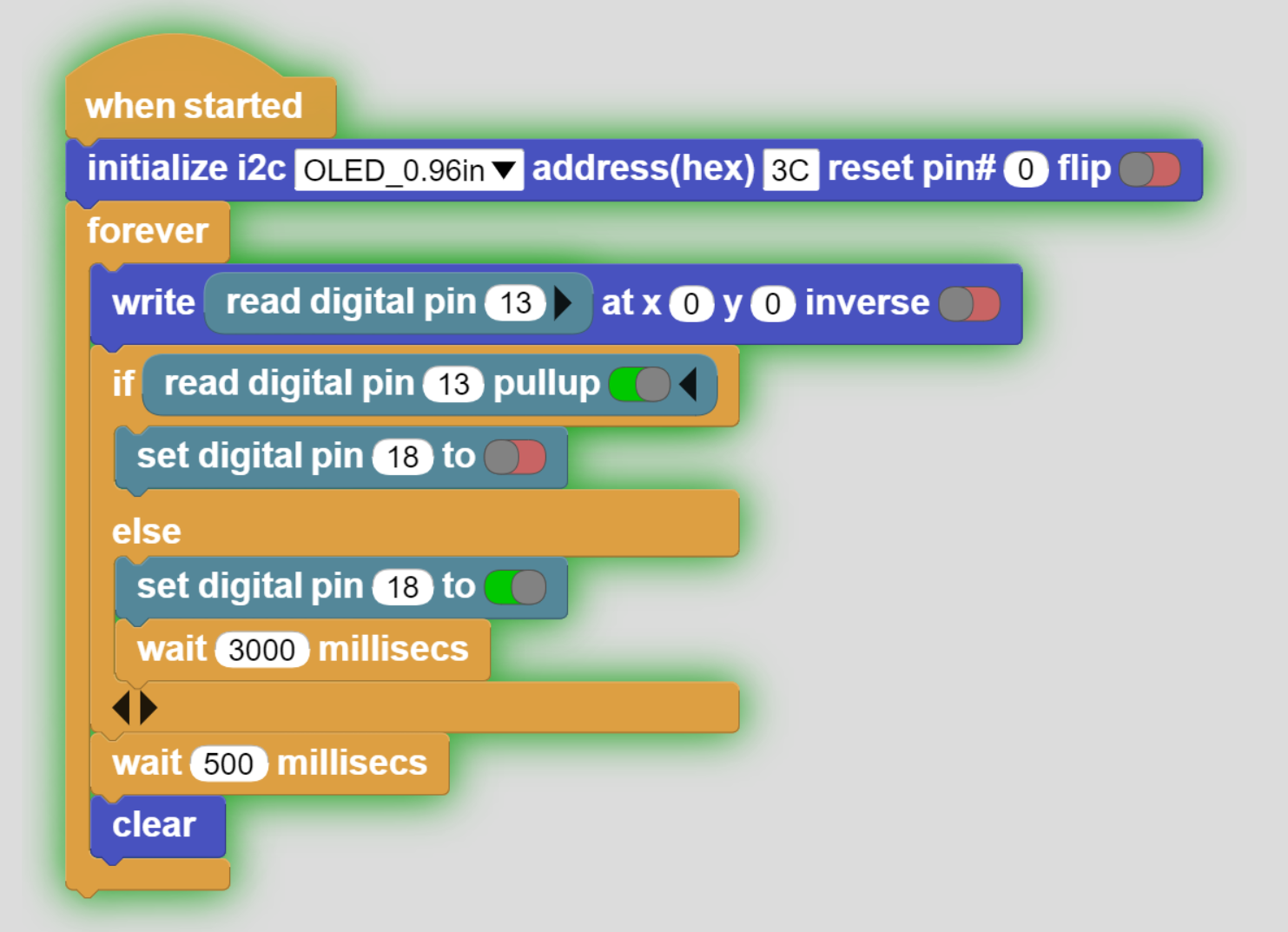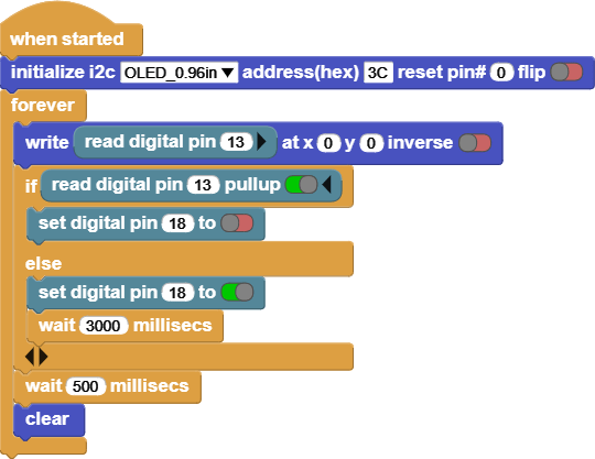 This code reads the value of the Button, and based on the value it will turn the 130DC Fan motor on or off.