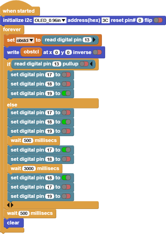 This code reads the value of the Hall magnetic, and based on the value it will turn the Horn on or off.