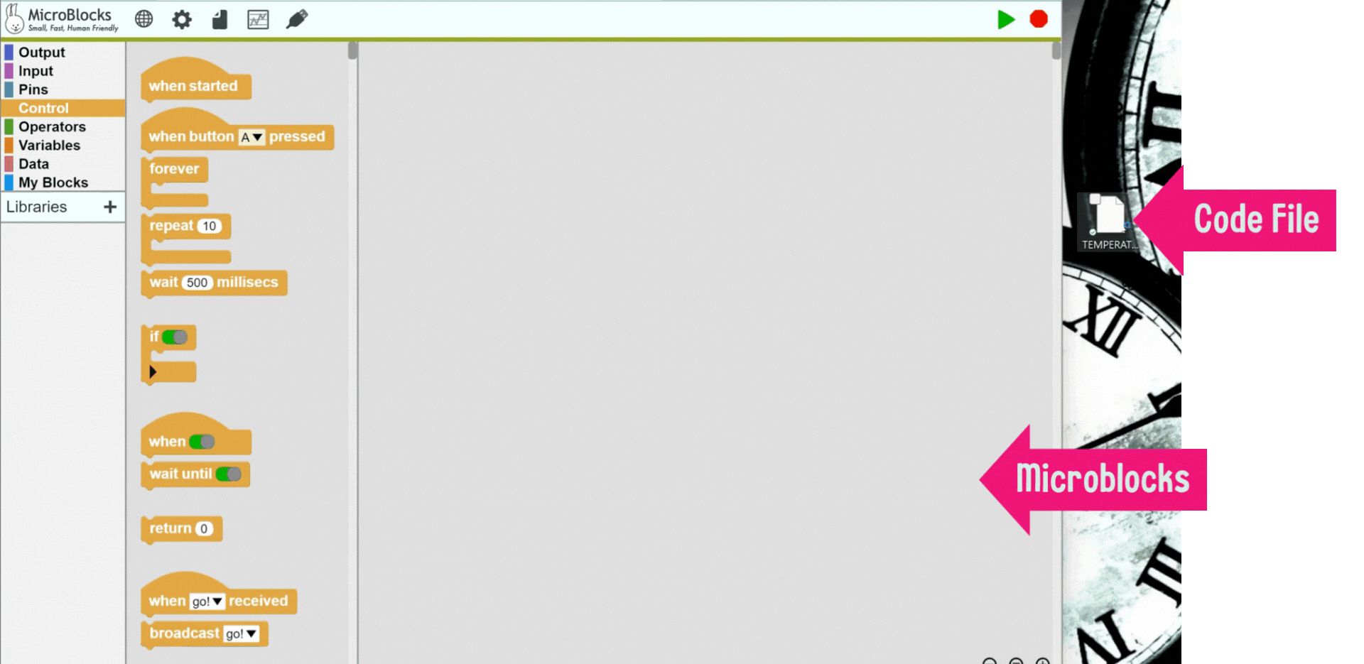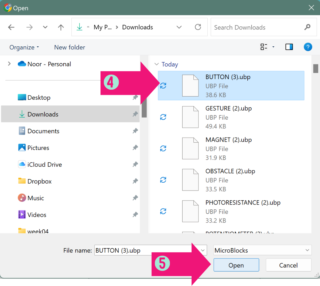 Another way to open the codes is to drag and drop them in Microblocks workspace.