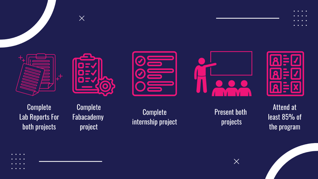 The internship program is a blend of the fab academy program which is supported by Tamkeen and research projects related to your field. The cost of the Fab Academy program is 1000 BHD, Tamkeen will cover the full cost of the program.