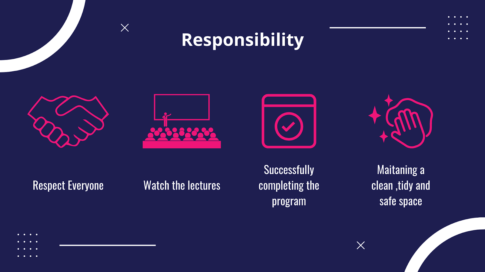 - Respect everyone regardless of the position and situation.